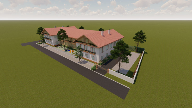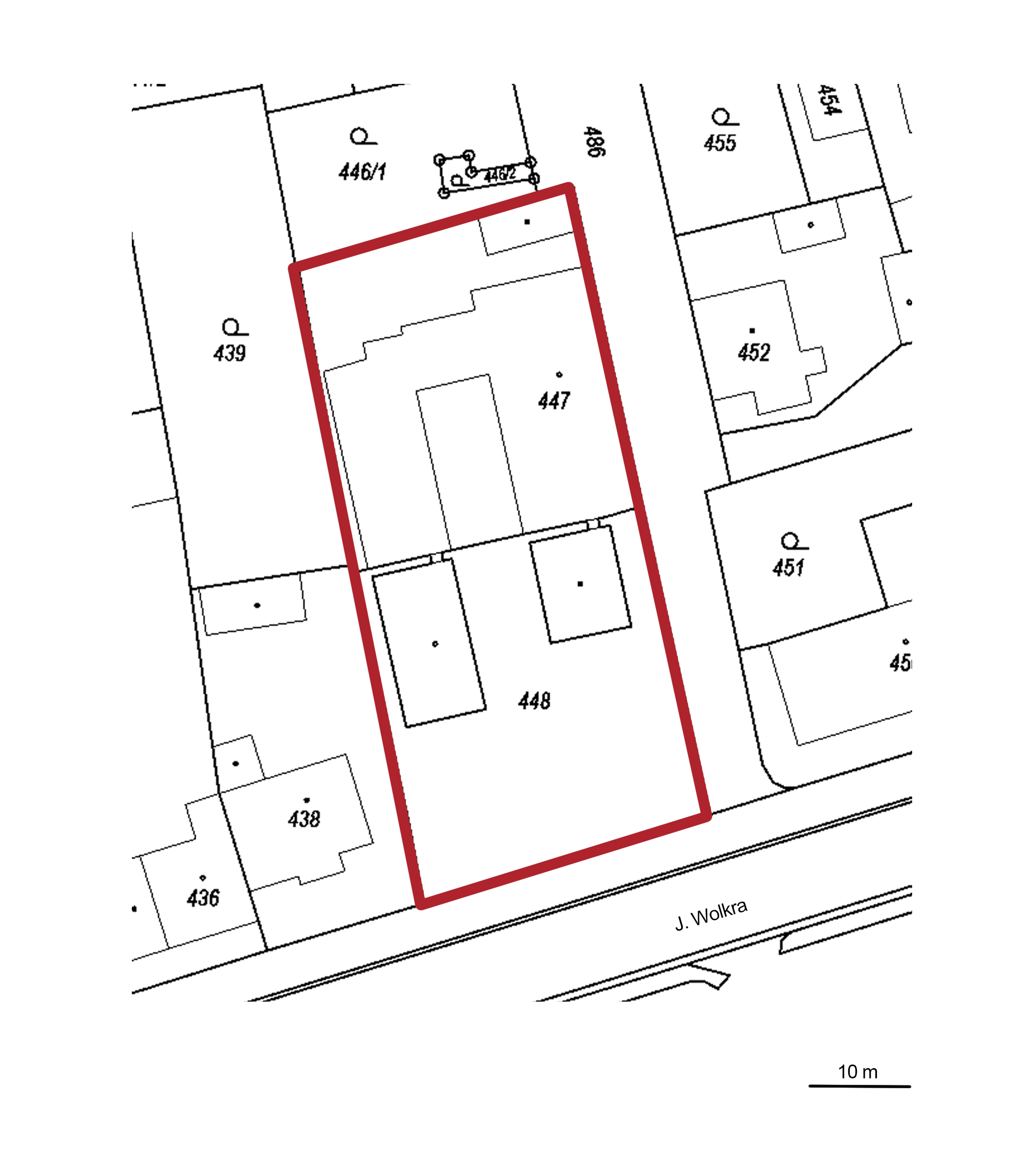 Pozemek je určen ke stavbě bytového domu o rozloze 780 m² s nezastavěnou plochou o rozloze 1056 m².