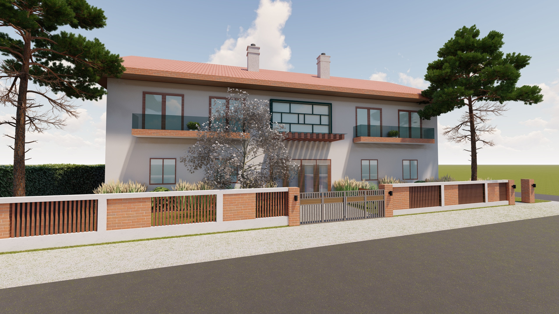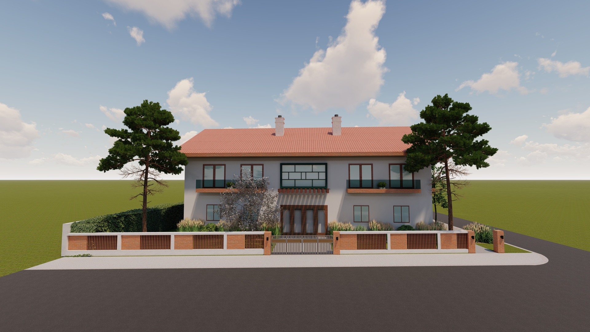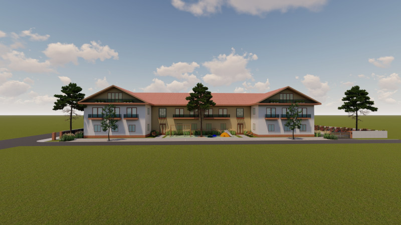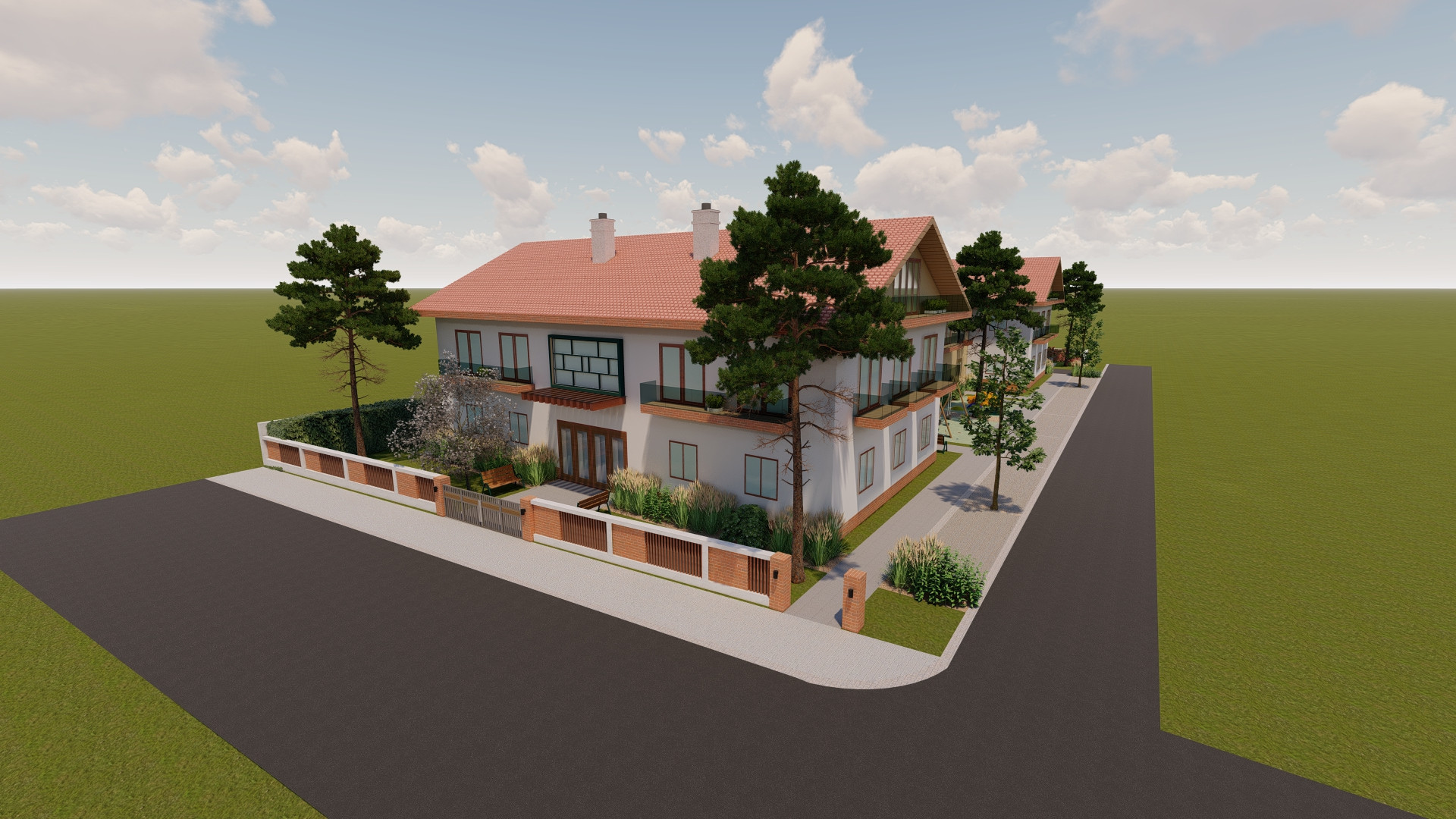 Náš návrh bytového domu spojuje trendy moderní architektury s tradičními prvky a materiály typickými pro jižní Moravu a s respektem k okolní zástavbě.